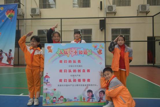 活动以“队知识十知道”为主题,少先队大队委以学生自主管理的方式开展自我管理,以闯关的形式对一年级孩子进行队知识考核,共设十道关卡,所有关卡均通过者,才能获得由大队委颁发的队知识章。