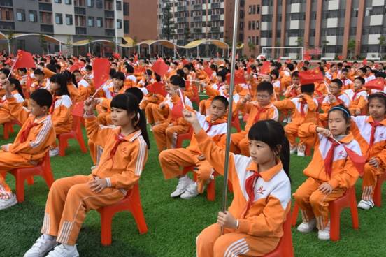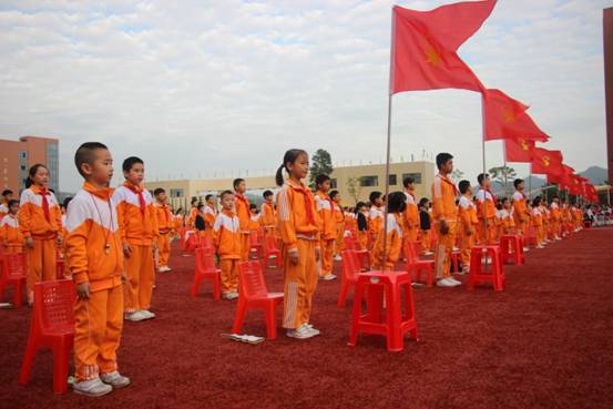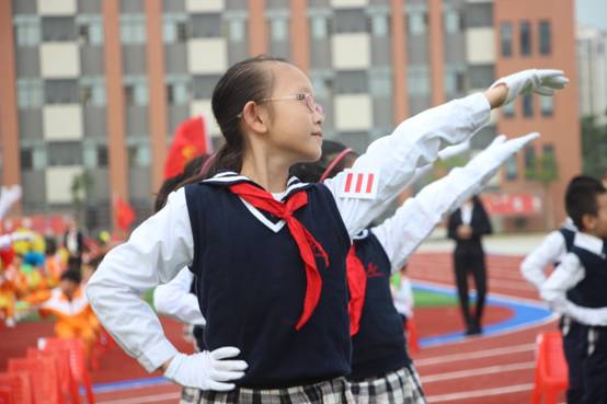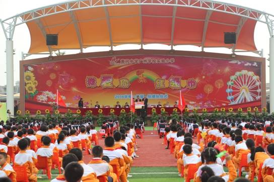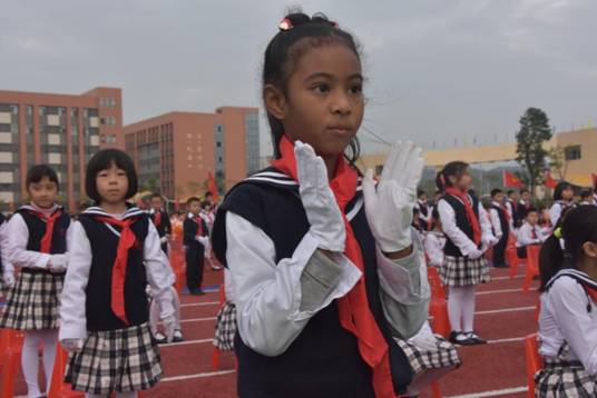仪式上,广州市黄广中学团委书记张森林对入队新生表示衷心的祝愿。即将入队的一年级孩子怀揣着欣喜与激动,在高年级大哥哥、大姐姐的带领下,迈着坚定的步伐入场。