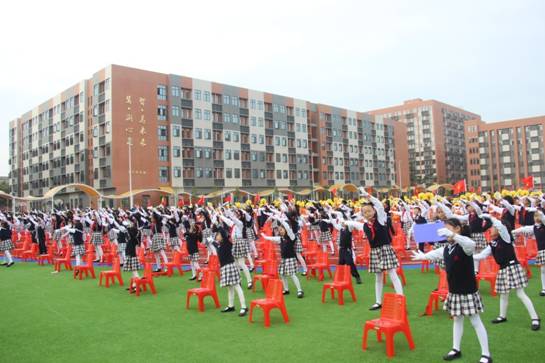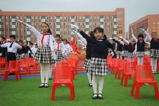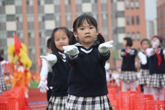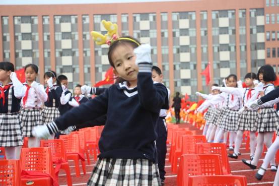 寓意“从小立志,热爱学习,快乐生长”的音乐《生长吧》响起,全场孩子们翩翩起舞,舒展身肢,像一棵课小树,在阳关和雨露的关爱下拔节成长。