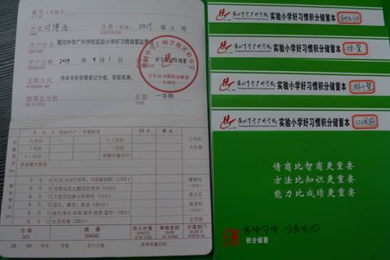 学校迁引银行卡的功能效应,帮助学生认识付出与收获的关系,通过系统的考核,通过分值的变化引导学生内化成自觉的行动。“好习惯储蓄小银行”一个学期考核一次,小学六年连续使用。 创新的德育评价模式,将给所有学生未来成长道路带来 “一本通”的“福祉”。