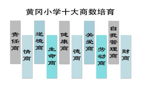 黄广小学使学生在获得优秀学习成果的同时,提高学生的德商(MQ)、情商(EQ)、健康商数(HQ)、逆境商数(AQ)、生命商数(LQ)等,培养学生优秀品德、与人交往的能力、保持健康体魄的能力、身处逆境迎难而上的能力、树立正确人生观等关键能力,塑造学生阳光心态,健全人格,使学生实现自我管理、自我发展,关爱他人、热爱世界,激扬生命的激情。