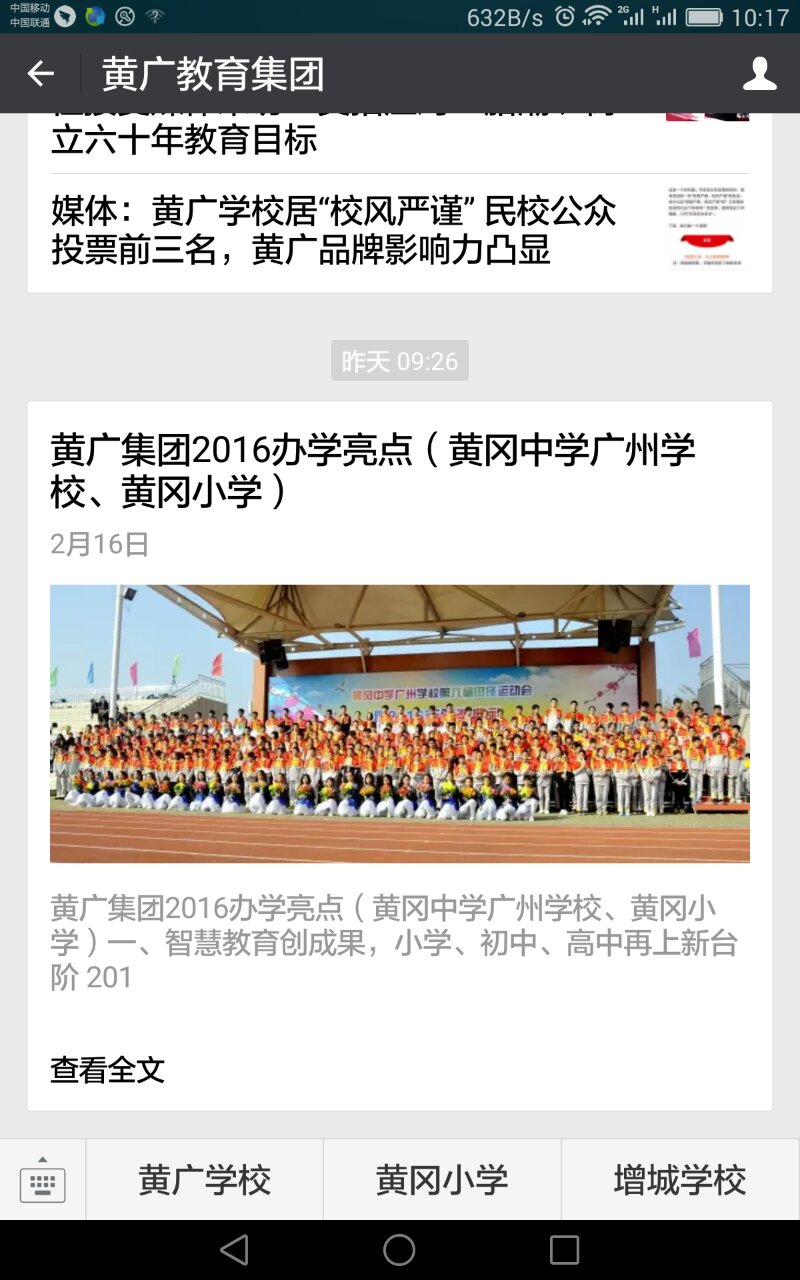 黄广教育集团公共微信平台同时包括:广州市黄广中学、黄广小学(凤凰北校区/金谷南校区)、黄广中学广州增城学校等旗下学校的办学资讯信息;关注黄广教育集团微信公众号,可全程、一次性关注黄广教育集团旗下各个学校的全部信息,更为便利。