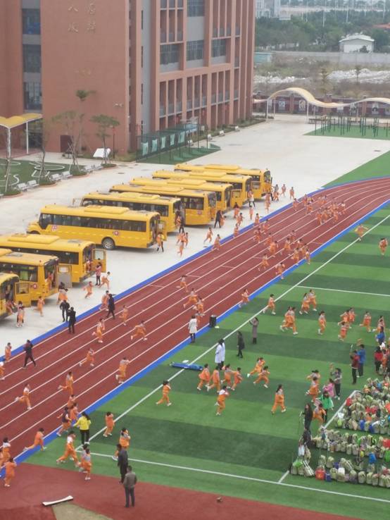 2月24日和27日两天,广州市花都区黄广小学两校区分别携手校车公司举行了校车安全疏散演习。