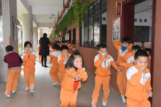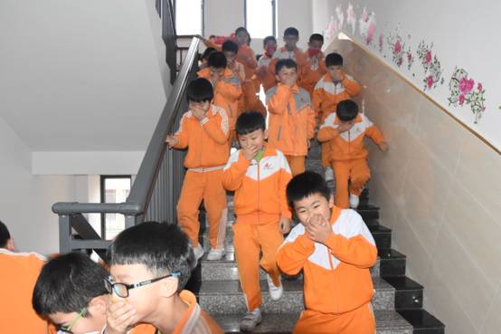 上午10:00教学区疏散演练准时开始,随着警铃声响起,老师下达撤离指令,学生手捏鼻子,捂嘴巴,弯腰快速撤离,整个过程用时4分钟。