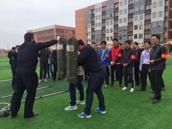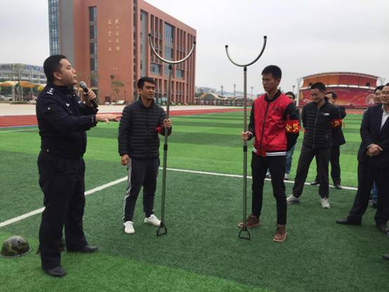 随后,民警示范了防恐装备防暴叉、防暴盾牌的使用,并进行了现场处置演示,就突发事件处理、防范自救等方面作了详细讲解,并强调:任何时候,一定要确保学生和自身安全,要加强警校联动机制建设,共同建设平安文明校园。