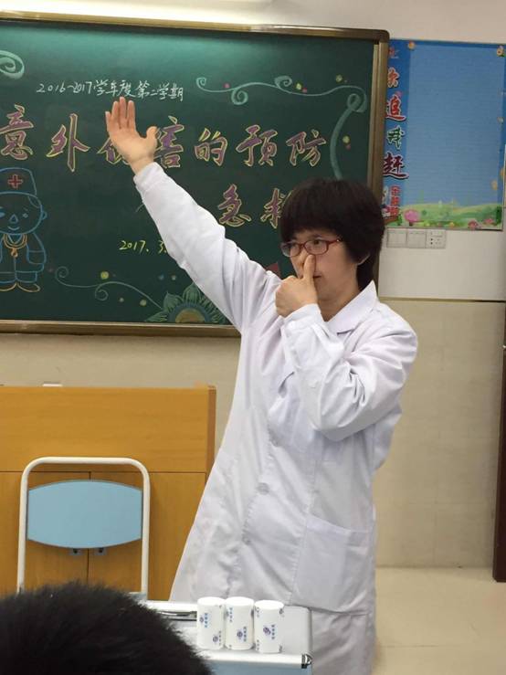 3月15日,学校欧亿叶、赖艳环两位校医分批为生活教师、教师、室外活动课教师等,有针对性地开展了紧急救护、意外伤害处理培训。