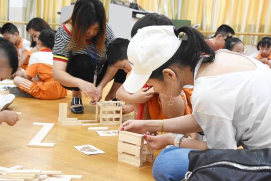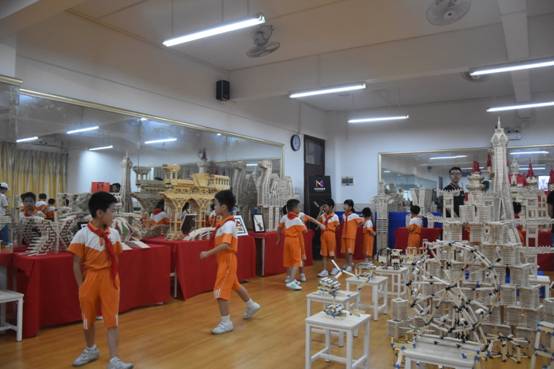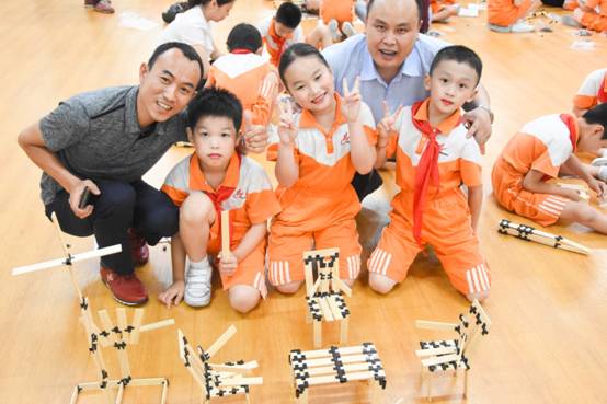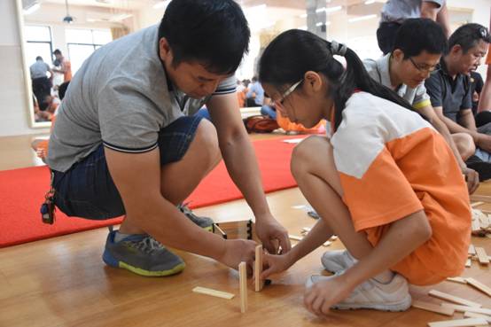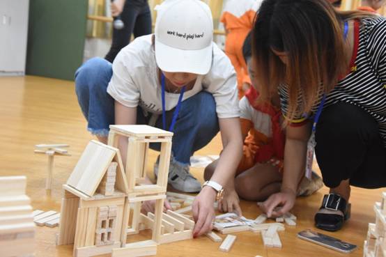 参加活动的孩子和家长在参观大型“一带一路”主题木条搭建后,在巨幅创意作品的启发下,以年级为单位,家长和孩子一起,分别开启以“万物有形”、“宠物之家”、“善待地球”三大主题为核心的木条创意搭建之旅。
