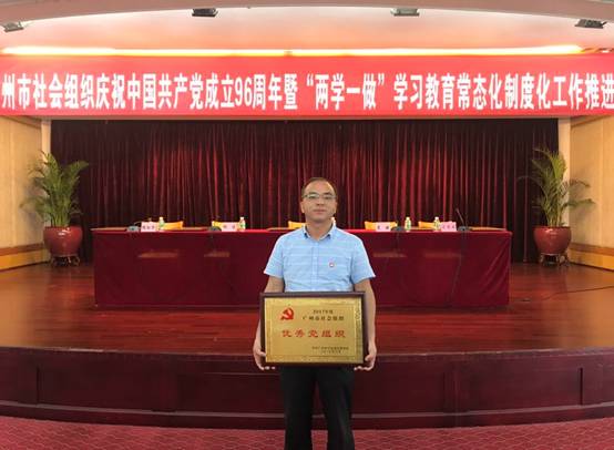 大会隆重表彰广州市黄广中学党总支等为“2017年度广州市社会组织优秀党组织”。