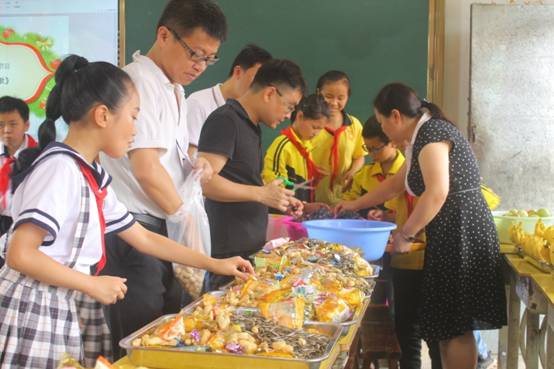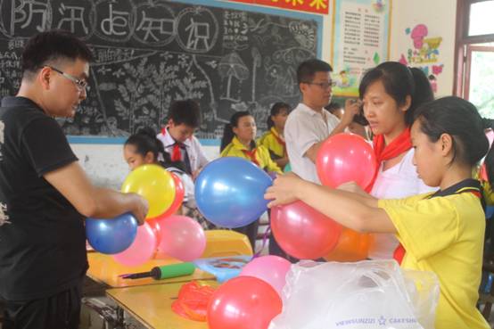 午饭后,爱心代表队和老坟嘴学校的老师们一起布置生日会的现场,彩排流程、准备了孩子们从广州带来的所有学生精心制作的生日卡片和礼物。