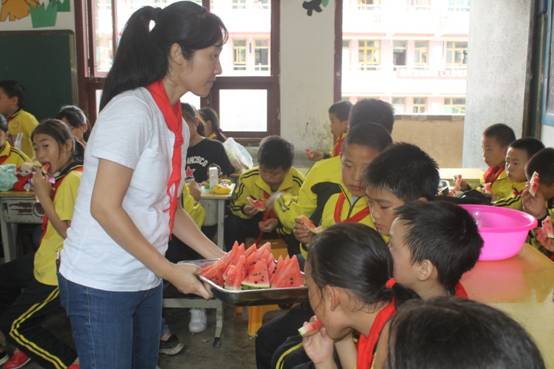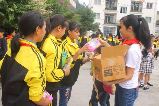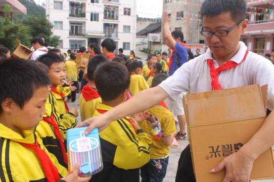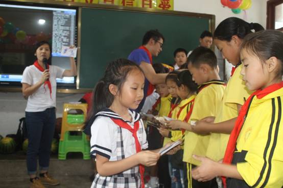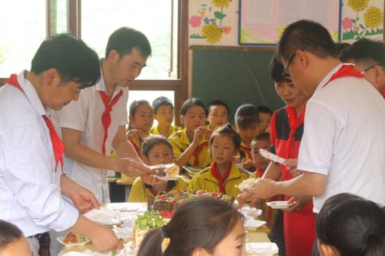 此行我们是专门为该校6、7、8月出生的同学们过集体生日。活动下午两点正式开始,黄广小学和老坟嘴学校的孩子一起开心地玩游戏,领礼物,吃蛋糕,刘琅忠主任还把黄广小学孩子们们捐献的善款转交给该校的王校长。