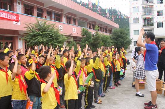 2个小时很快就过去了,大队辅导员杨少涛老师和孩子们以标准的队礼,和老坟嘴学校的孩子们一一挥手告别。