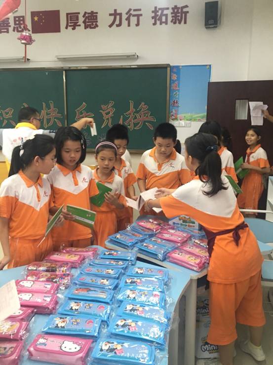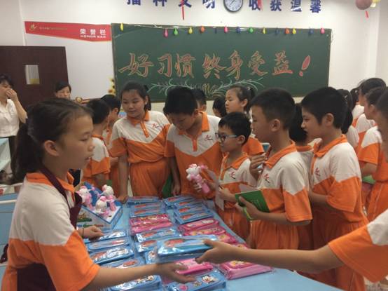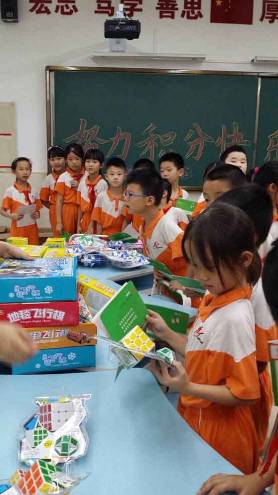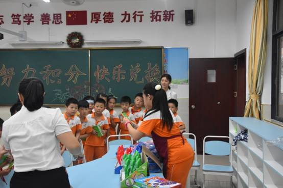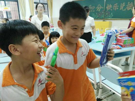 为此,学校在设置“德育银行卡”的同时,还搭建“好习惯小超市”,通过积分兑换礼品的特殊奖励方式,搭建激励向上、自我管理、自我发展的平台,让学生在生活、学习中进行良好自我管理。