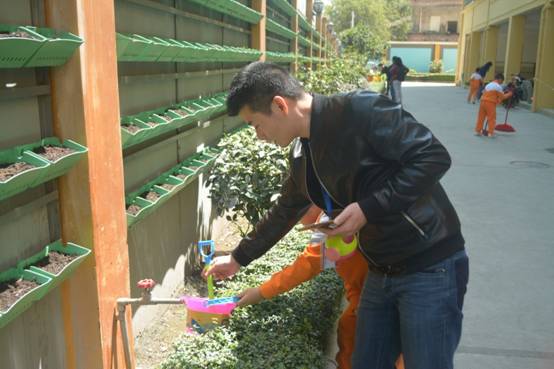 他们用心打造一面植物墙,让万紫千红在墙壁上绽放。