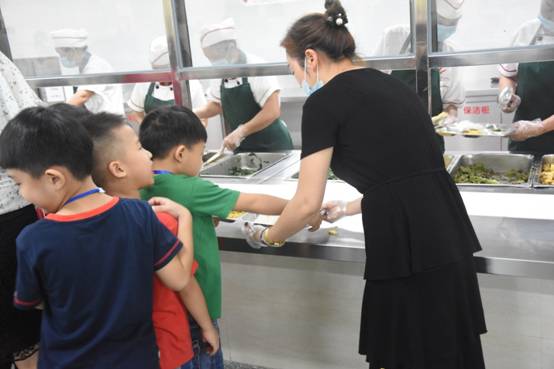 特别值得一提的是,当天中午第一次课间餐进行了自主排队用餐的尝试。在老师的指导下,孩子从餐前有序洗手、熟悉餐桌位置、自主排队领餐、规范用餐、有序排队处理厨余物品、轻声、有序、叠放餐具等一系列流程,秩序井然有序,孩子彬彬有礼。