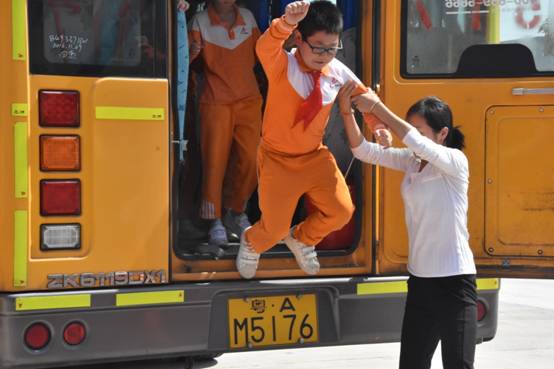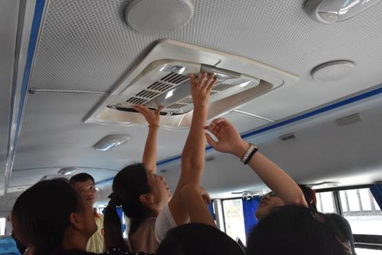 活动首先利用班会课时间,组织学生观看安全乘车的教育视频,让孩子们在课堂上充分认识乘车安全的重要性;然后组织全体跟车老师学习、操作应急逃生门的开启及安全锤,消防灭火器的使用;最后组织全体乘车学生进行校车逃生安全演练。