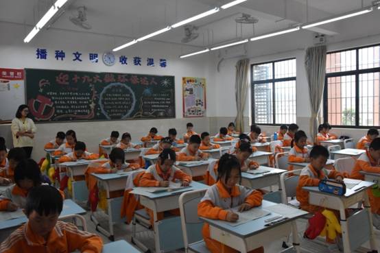 11月8日,广州市花都区黄广小学两校区同时举行期中质量调研检测,并邀请家长担任“监测员”,和老师一起参与监测工作。