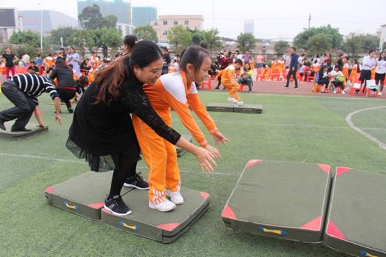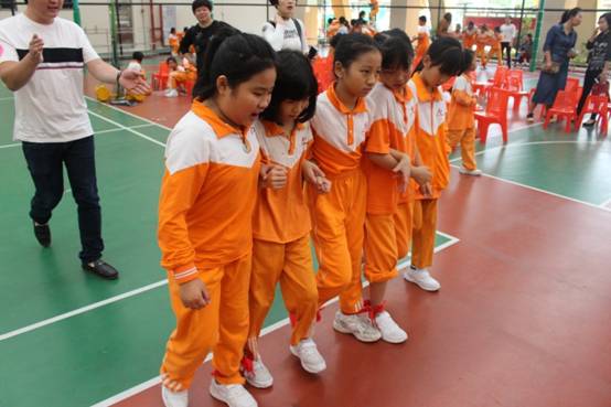 三年级组集体项目:比翼双飞、神算小神童、稳中求胜、趣味障碍跑、双龙戏珠;亲子项目:搭桥过河;双棍夹求跑;