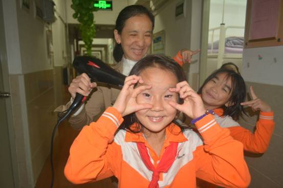 孩子们冲完凉后,老师们利用空余时间带着孩子们做游戏、看书、分享各自带来的美食等等,让孩子们从中体会到集体的温暖。