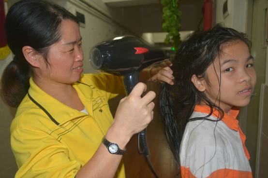晚上冲凉,生活老师需要提前关好门窗,准备好冲凉的浴巾、衣服;同时培训孩子们,冲完凉,先穿好浴袍,擦干身子,先穿内裤,擦干上身,脱掉浴袍,穿衣服,确保不会受凉。
