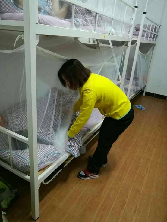 当然,孩子们在睡觉过程中,孩子们盖被情况怎样,是否有不良睡姿,孩子们睡熟后踢被子吗…… 不用担心,“毛毛虫”盖被方法让孩子们高枕无忧,而且一直以来生活管理是24小时制,白天有生活老师,晚上有夜班,随时为孩子们服务。