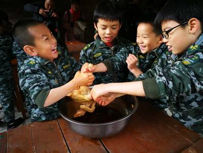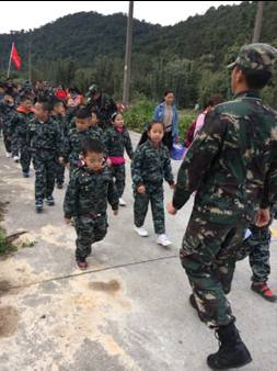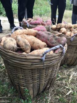 行列队到田地里挖甜薯的时候,教官们特别注意孩子们的安全,因为山里路窄车多。哦对了,甜薯可以生吃,那个脆爽劲儿。