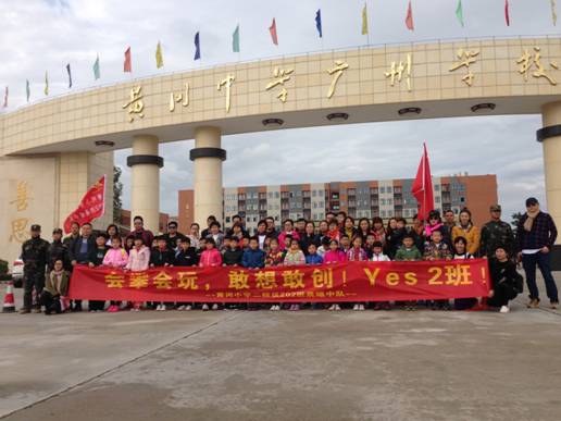 广州市花都区黄广小学二校区二(2)班晨曦中队全体师生家长前往花都梯面常青藤部落开展“特种兵”的一天主题队日活动。