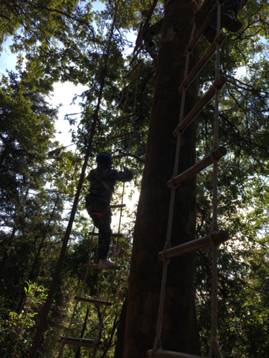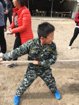 绳梯,每一个孩子都上去了。滑索,每一个都孩子过去了。冲坡,每一个孩子都下来了。我们中国的小孩子,也没那么娇气!