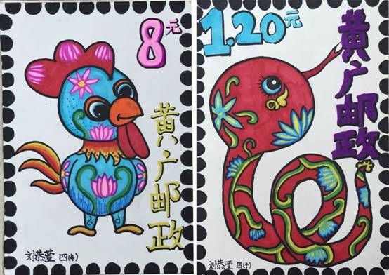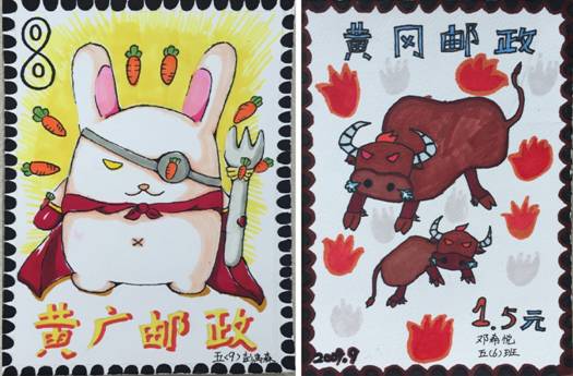 《生肖邮票——兔》设计师:彭禹森 五(9) 《生肖邮票——牛》设计师:邓希悦 五(6)