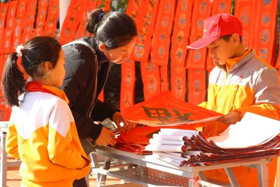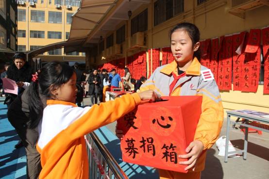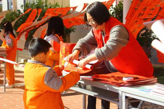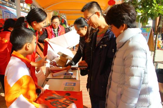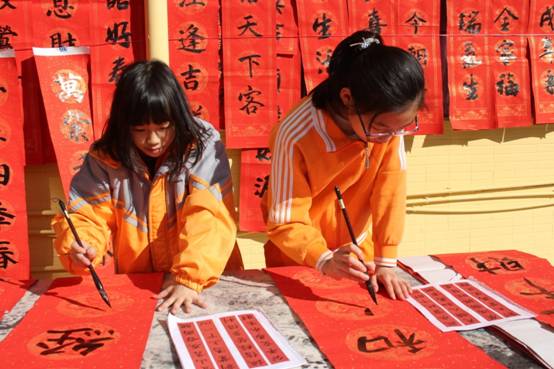 自去年开始,学校将寒假前举行“春联义卖”活动作为传统项目,让墨韵飘香成为弘扬中国传统年俗文化的重要组成,同时将“义卖”筹得的经费用于孩子们未来一年组织社会公益活动。