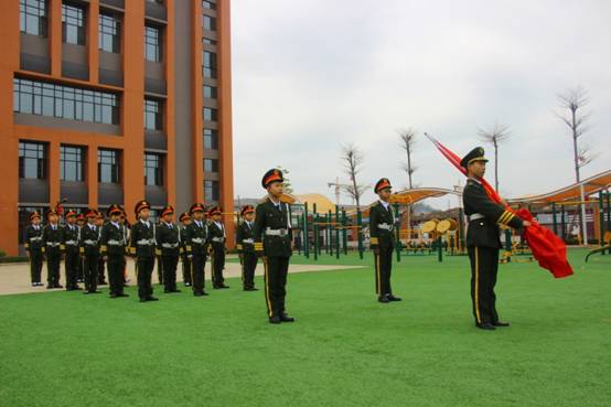 新年第一次升旗礼,国旗班孩子一身戎装亮相。