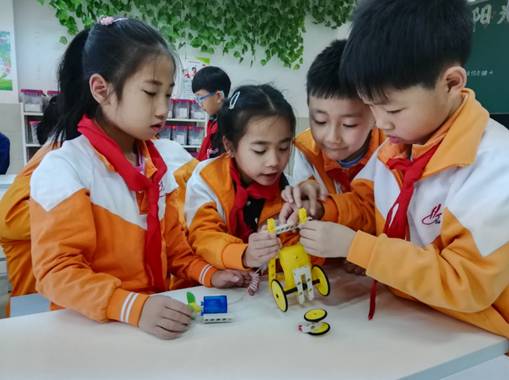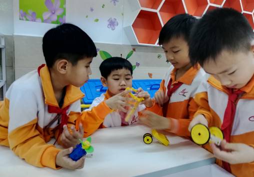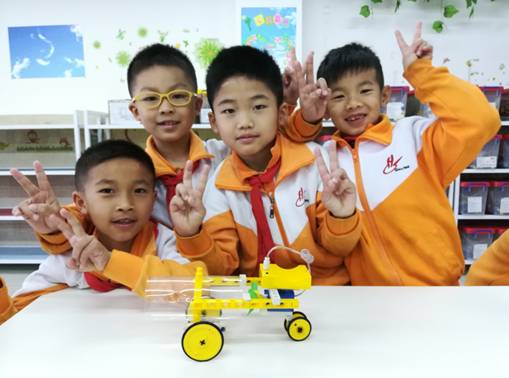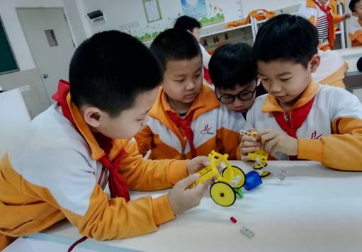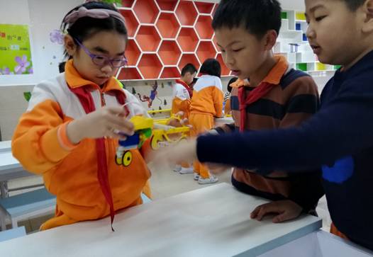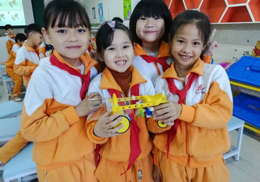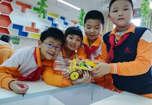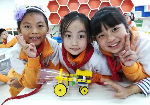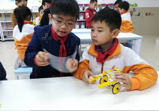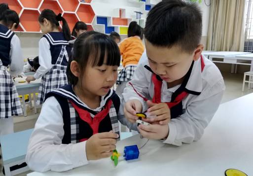 创客课堂上,孩子们积极探究,发现问题并解决问题,提出改进、创新想法,动脑设计,动手制作,分享交流,不断完善自己的创意。