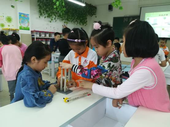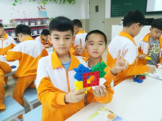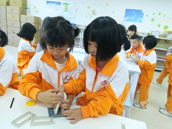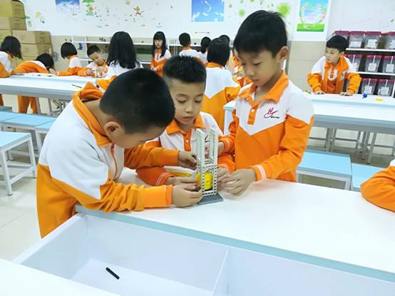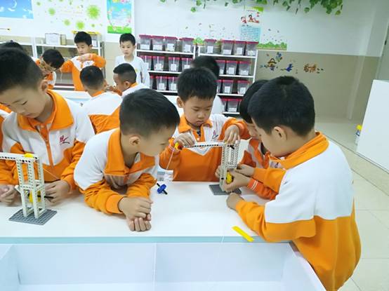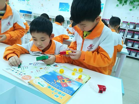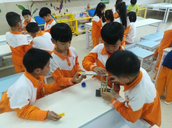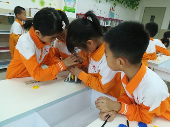 每次的课堂教学均通过小组合作的形式来完成任务,每个小组在组长的带领下,大家相互帮助、共同合作,有效锻炼了孩子们的动手能力和团队小组合作能力。