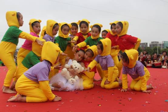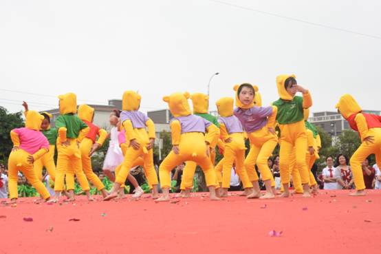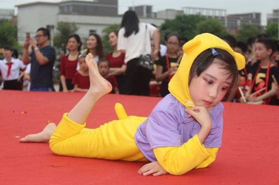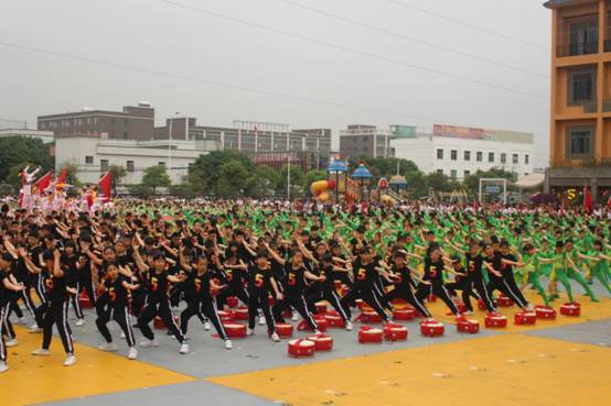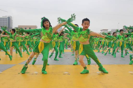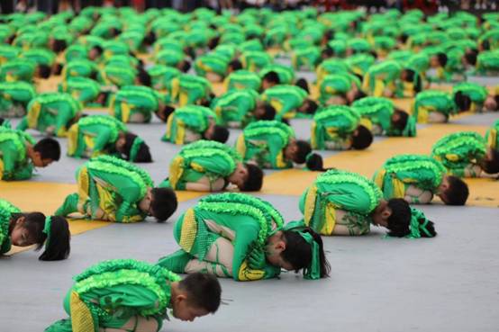 开幕式上,大型团体操《我和黄广一起长大》“萌芽、生长、感谢、繁盛、辉煌”共五个篇章,现场清新明快的音乐,动感的造型,一幅幅流光溢彩的画面,高度浓缩了黄广小学近五年来奋楫而进,蹄疾步稳的发展历程,赢得各界一致“叫绝”,黄广小学“艺术”名片再次成为佳话。