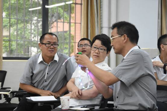 雷老师工作室团队一行,也为黄广小学分享了广州市创客教育在校园开展的基本情况,并结合自身生活经验,为全体参会教师作《你也可以当发明家》的专题报告,指导教师基于创客教育下,如何对孩子进行创新、乃至发明的“造物”指导,让孩子走向更高、更远的发展平台。