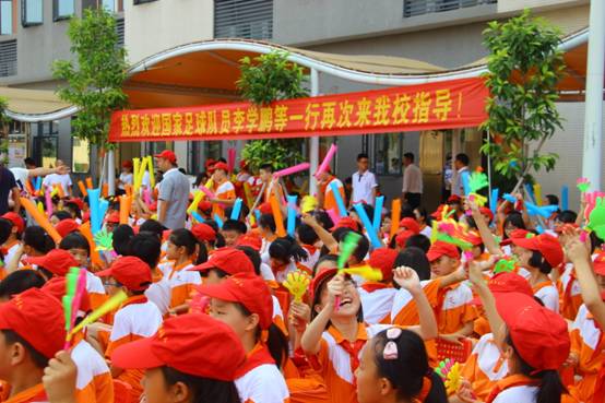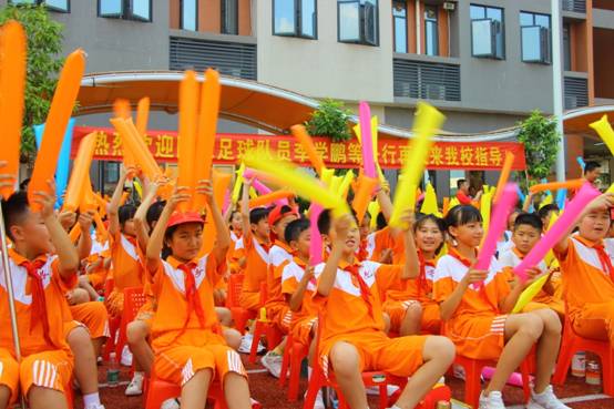 此外,李学鹏还向全体同学详细回忆了去年4月5日首次来到黄广小学,参加黄广教育集团青少年足球教育实践基地受聘仪式,和队友温家宝、刘世博一起,和黄广小学孩子们首次切磋分享足球快乐的情景。