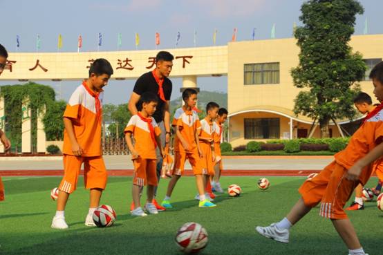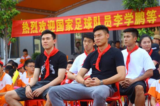 5月23日下午16:30,国家足球队员、广州恒大队员李学鹏,国足队员、广州恒大队员刘世博,恒大队员王军辉,贵州恒丰队员韩鹏飞等4位足坛明星低调现身广州市花都区黄广小学(黄广教育集团成员学校,简称黄广小学),指导该校两校区学生足球队训练。