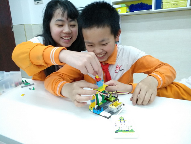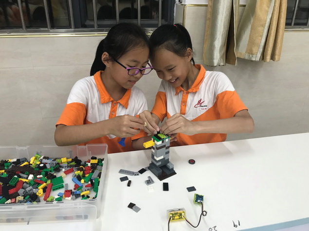 在我们的创客中,没有标准答案,也没有对错。孩子们没有约束,可以自由发挥他们的创意,轻松惬意的创作。