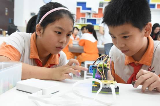 从本学期开学初起,广州市花都区黄广小学(黄广教育集团成员学校,简称黄广小学)一至六年级每学期全面开设创客课,领先全国同业推出,全面培养孩子的科学、技术、工程、艺术、数学(STEAM)等方面技能,提升学生的创新和实践操作能力。