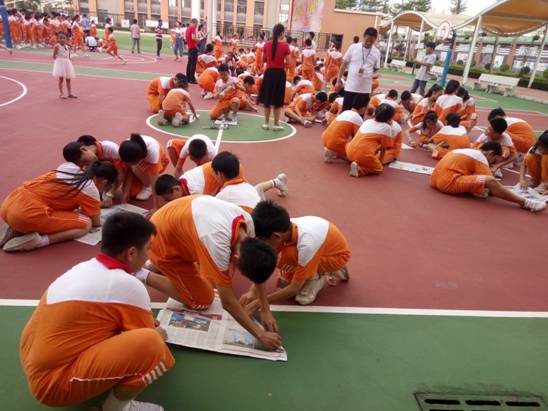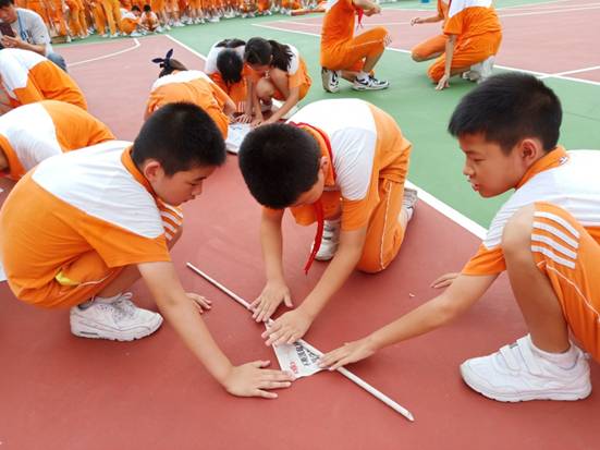 “这样的比赛挺有意思,就是准备道具很复杂。因为之前参加过类似的比赛,做过一些研究,知道折报纸的时候,应先观察它的纹路,如果它的纹路是竖着的,那么就横着折报纸。” 比赛时,六(2)班孩子说。