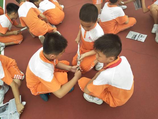 当天,黄广小学“缤纷创客季”活动中,二校区五六年级进行了“报纸承重”比赛,六(2)的三位同学用报纸折成的纸绳成功吊起了90瓶瓶装水(每瓶瓶装水约500g)问鼎冠军。