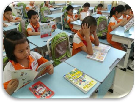 孩子们每周沉浸在书的海洋里,读得津津有味。