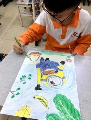 每周一到周三的兴趣课时间,孩子们都如期相约,来到这个飘着悠扬轻音乐,安静、明亮又宽敞的画室,静静地画一幅属于自己的小画,任时间悄悄飞逝,任午后的阳光慢慢地在指间转移。