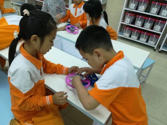 一学期即将结束,广州市花都区黄广小学(黄广教育集团成员学校,简称黄广小学)一年级的孩子们已经进入状态,在拼装的时候也轻车熟路,速度越来越快,动作也越来越熟练,小组伙伴也配合得更默契了。