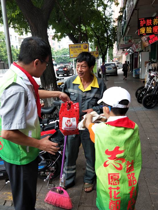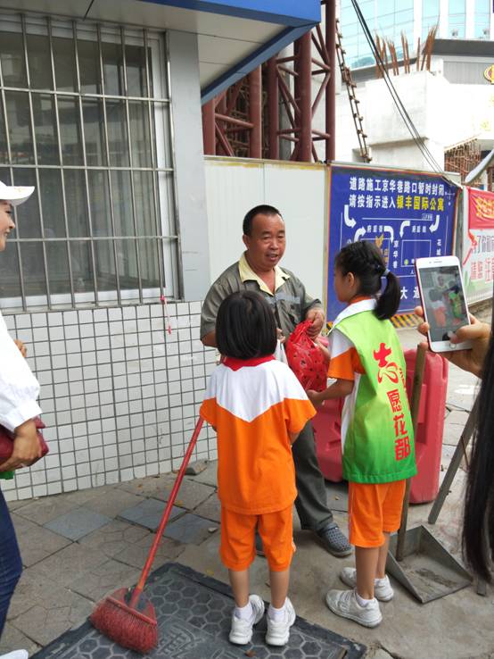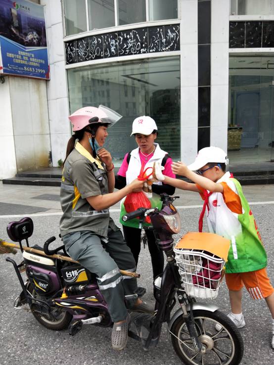 6月16日,端午节前夕,广州市花都区黄广小学(黄广教育集团成员学校,简称黄广小学)少先队“智慧大队”联合花都区志愿者协会,辅导员及队员代表、家长代表等一行,持续三个小时,走街串巷,沿路向花都“城市美容师”——环卫工人送节日礼物粽子和夏日消暑饮料王老吉,向他们致以崇高的敬意和节日问候。
