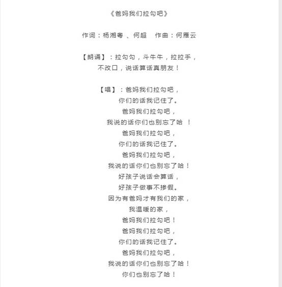 附:20集少儿电视剧《爸妈,我们拉勾吧》同名主题曲歌词