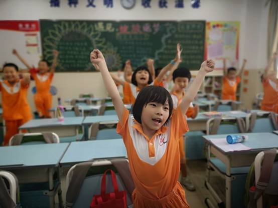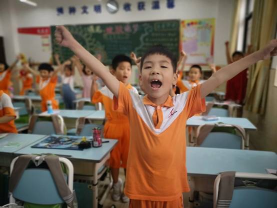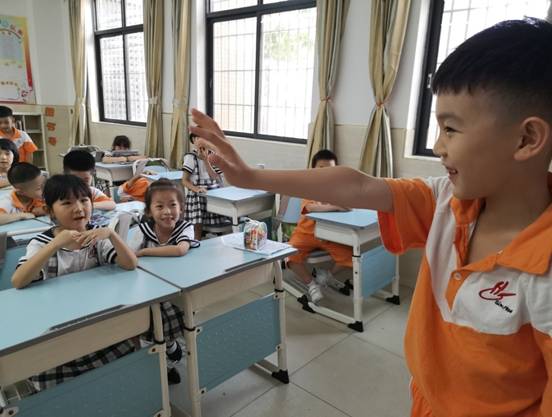 广州市花都区黄广小学(黄广教育集团成员学校,简称黄广小学)一年级英语兴趣班黄老师,每次课堂上孩子们开心时,都会以这样的方式互动。