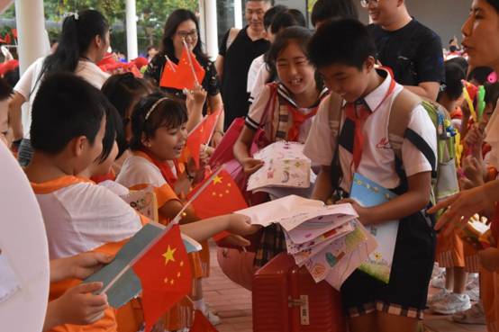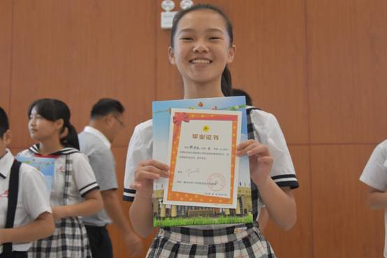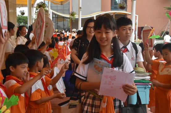 捧着校长亲自颁发的毕业证书和纪念册,走在学弟学妹们夹道欢送的队伍中,孩子们露出自信的笑容,阔步向前。