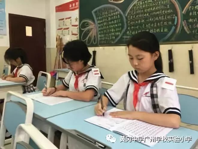 为了让每个孩子养成良好的书写习惯,广州市花都区黄广小学(简称黄广小学)除每天下午安排十分钟的练字时间外,还开设了书法课,由专业书法老师执教,同时为书法爱好的学生提供了相关兴趣课程,进一步深入练习。