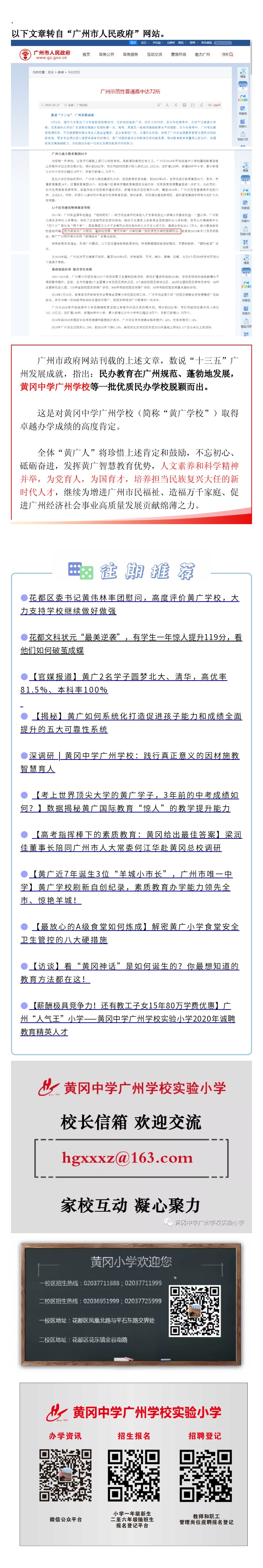 > 【数说“十三五” 广州发展成就,点名黄广】政府网站:广州市黄广中学等优质学校脱颖而出