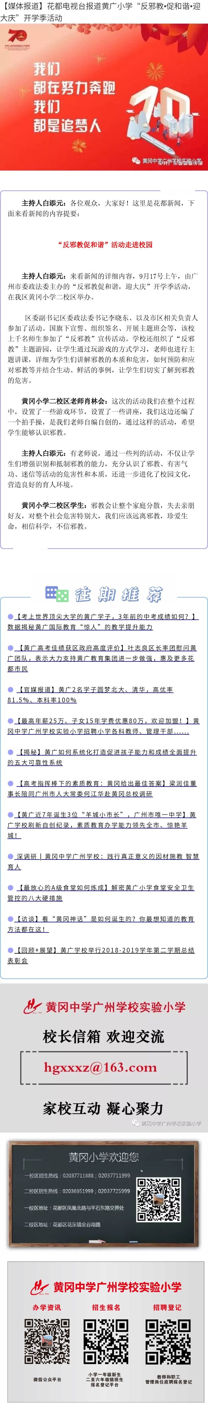 【媒体报道】花都电视台报道黄广小学“反邪教•促和谐•迎大庆”开学季活动